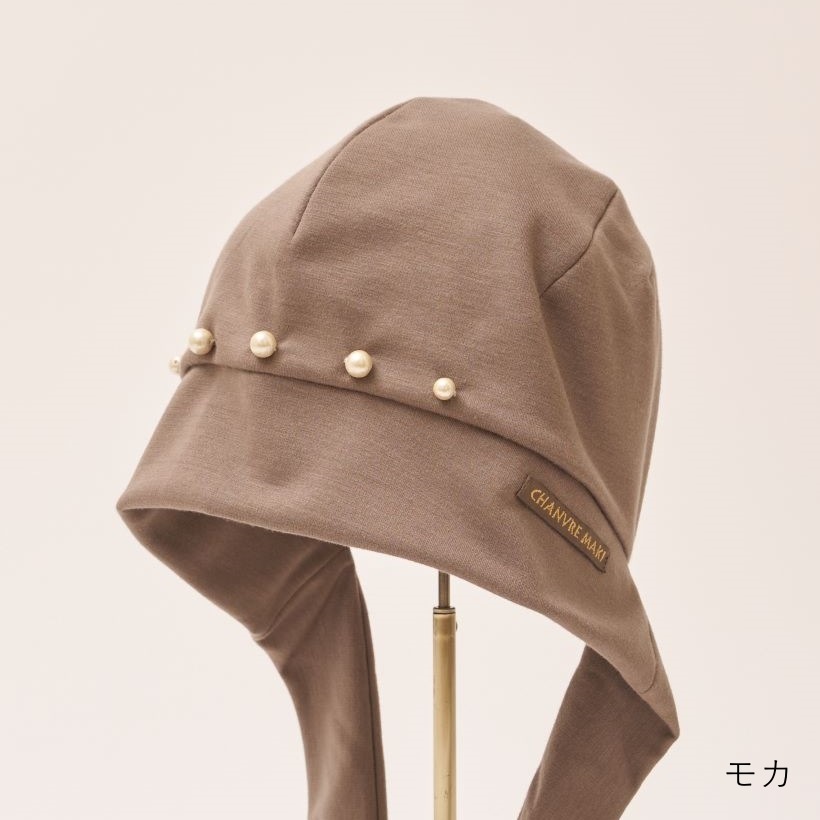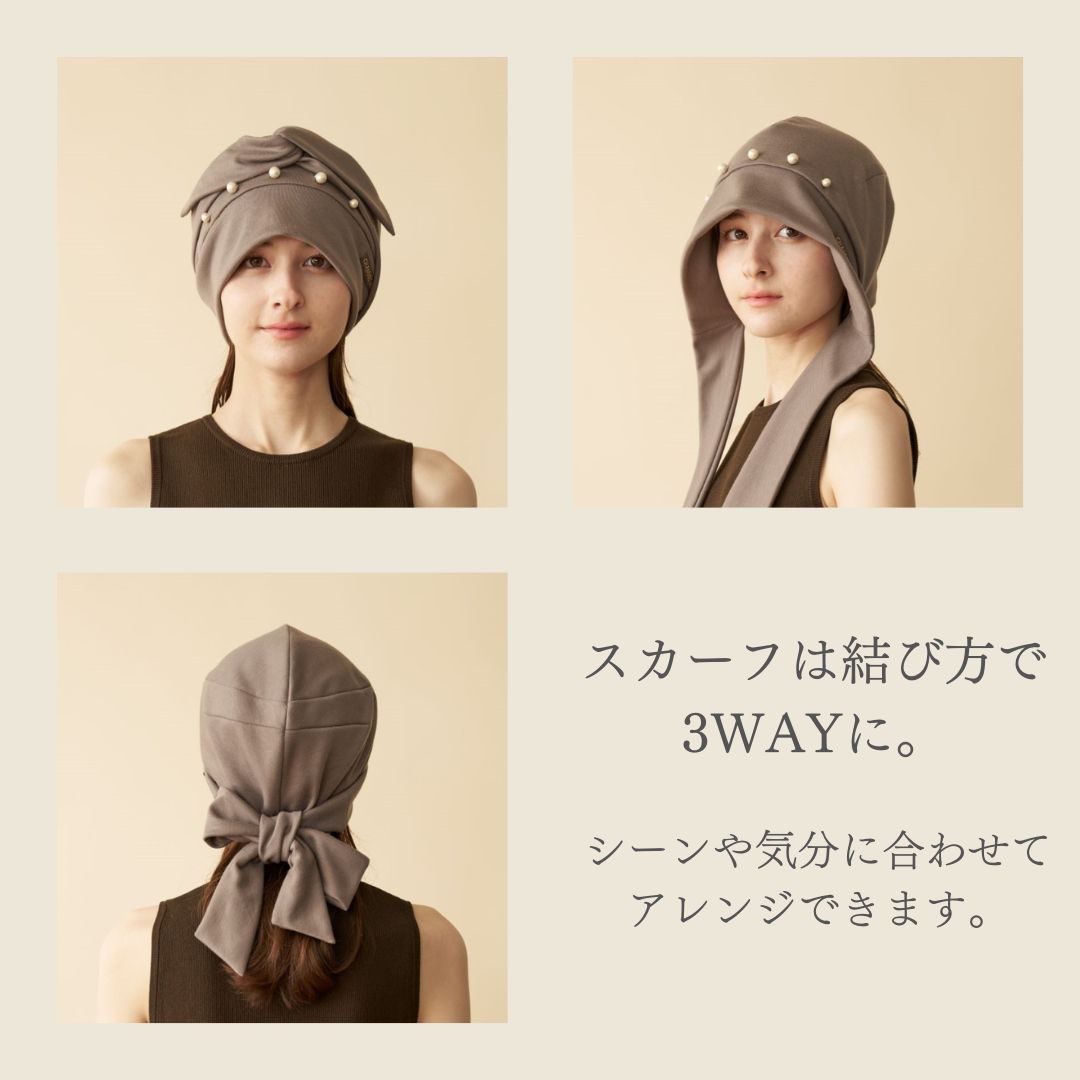 頭皮に直接触れる裏地は、オーガニックコットン100%のダブルガーゼ使用。 ガーゼを2枚重ねているため、厚みが増して、ふんわりとした柔らかいタッチがお肌への負担を軽減します。