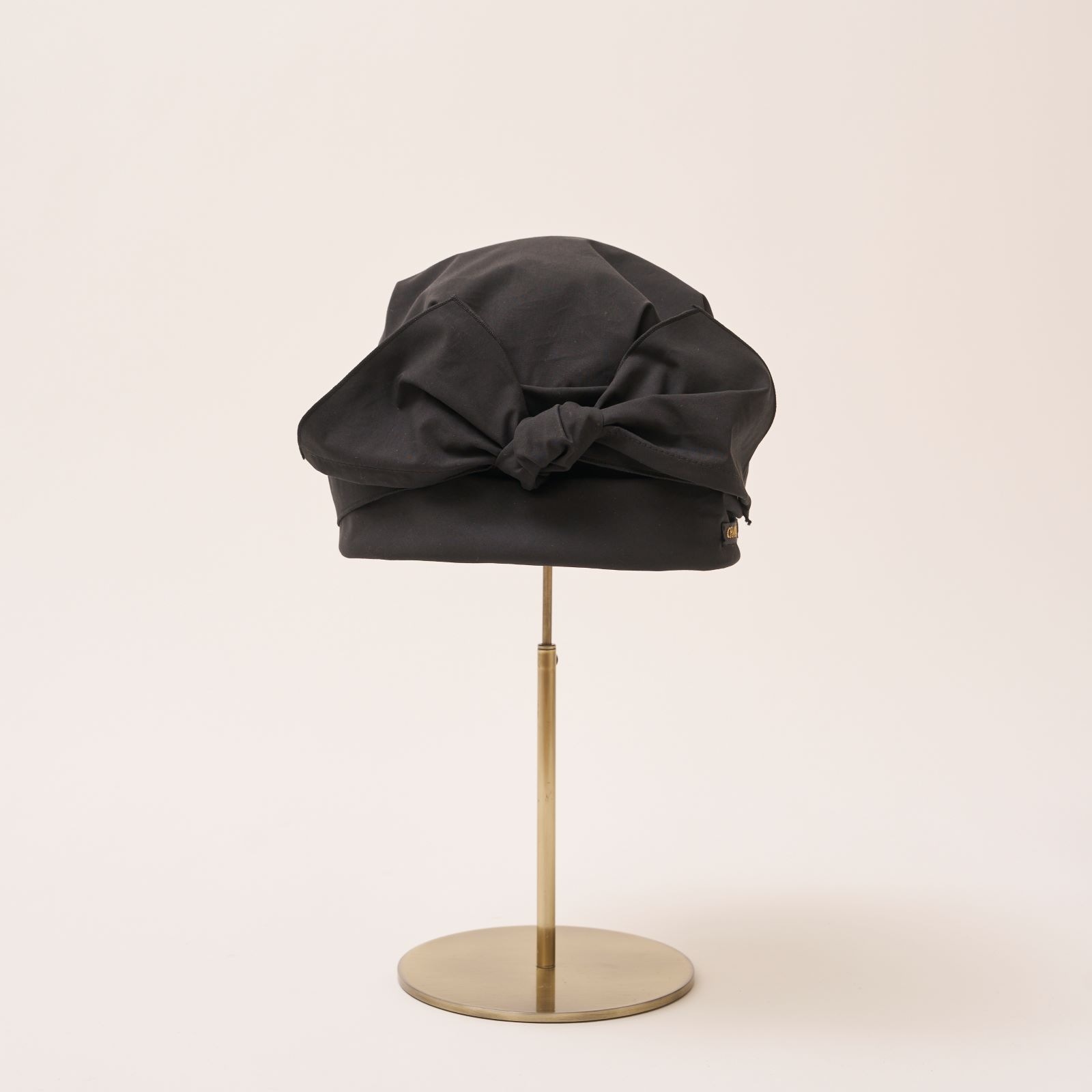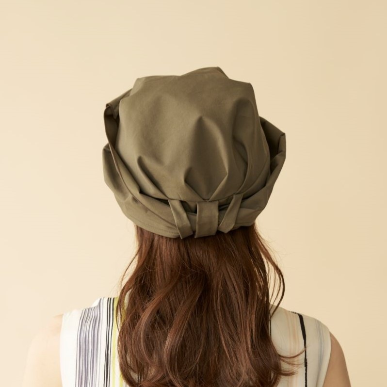 後頭部には、柔らかく伸縮性のある糸ゴムを使用。フィット感があり、包み込むような被り心地。
