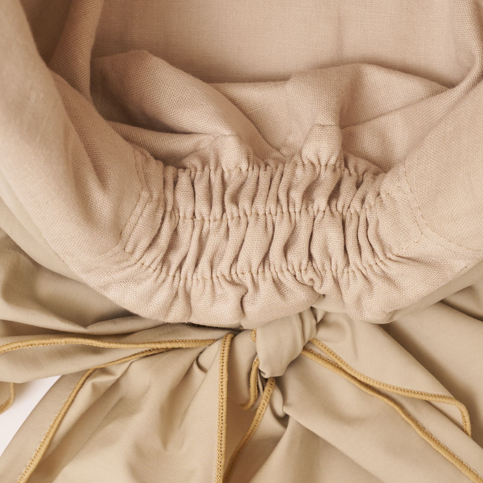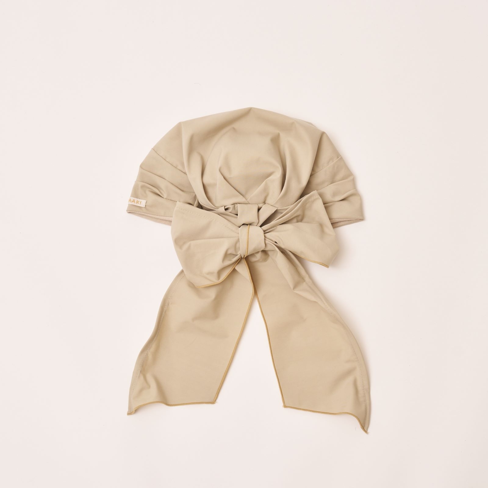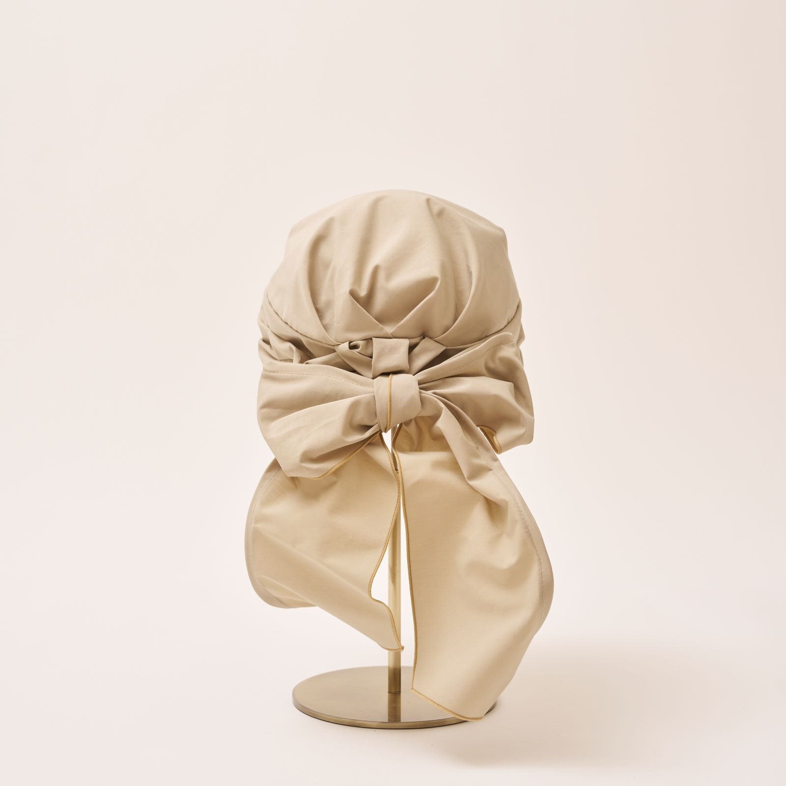 頭皮に直接触れる裏地は、オーガニックコットン100%のダブルガーゼ使用。 ガーゼを2枚重ねているため、厚みが増して、ふんわりとした柔らかいタッチがお肌への負担を軽減します。