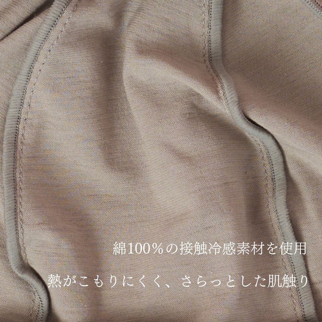 肌が生地に触れた時、瞬時に熱が移動するため、熱がこもりにくく、蒸れにくいのが特徴。シャリ感があるので、汗による生地の肌へのべたつきが気になる方におすすめです。