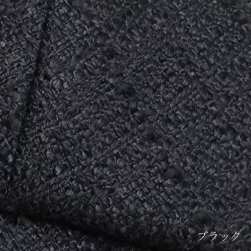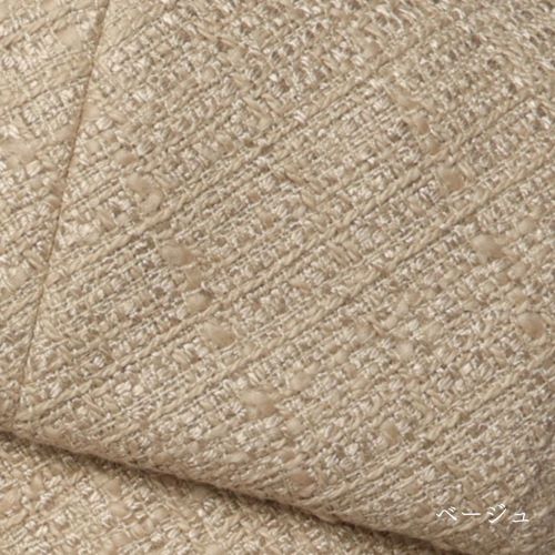光沢のあるレーヨンとマットなウール、スラブのシンプルな糸を組み合わせ、立体的な表面感で豊かな表情を見せるツイード素材を使用。